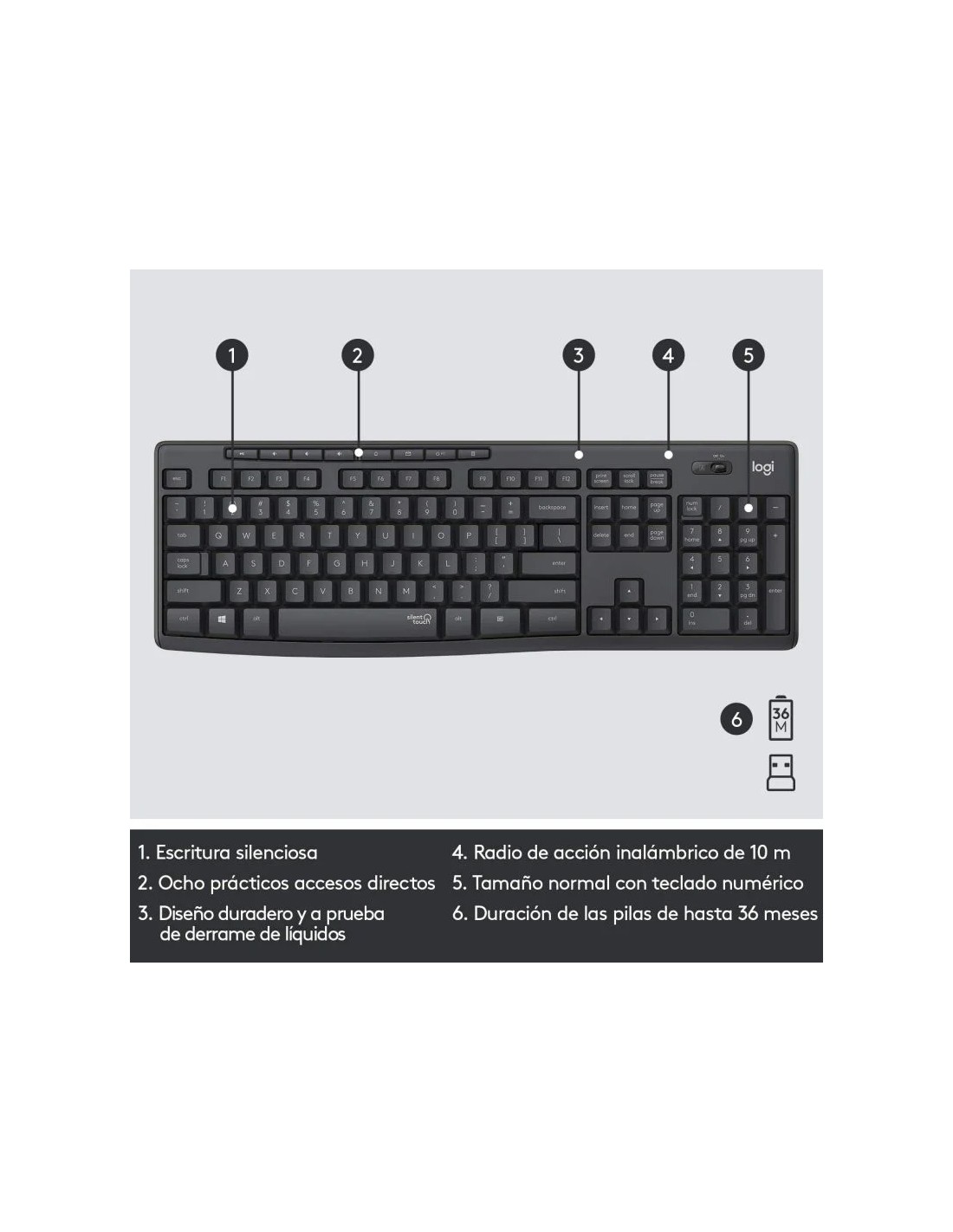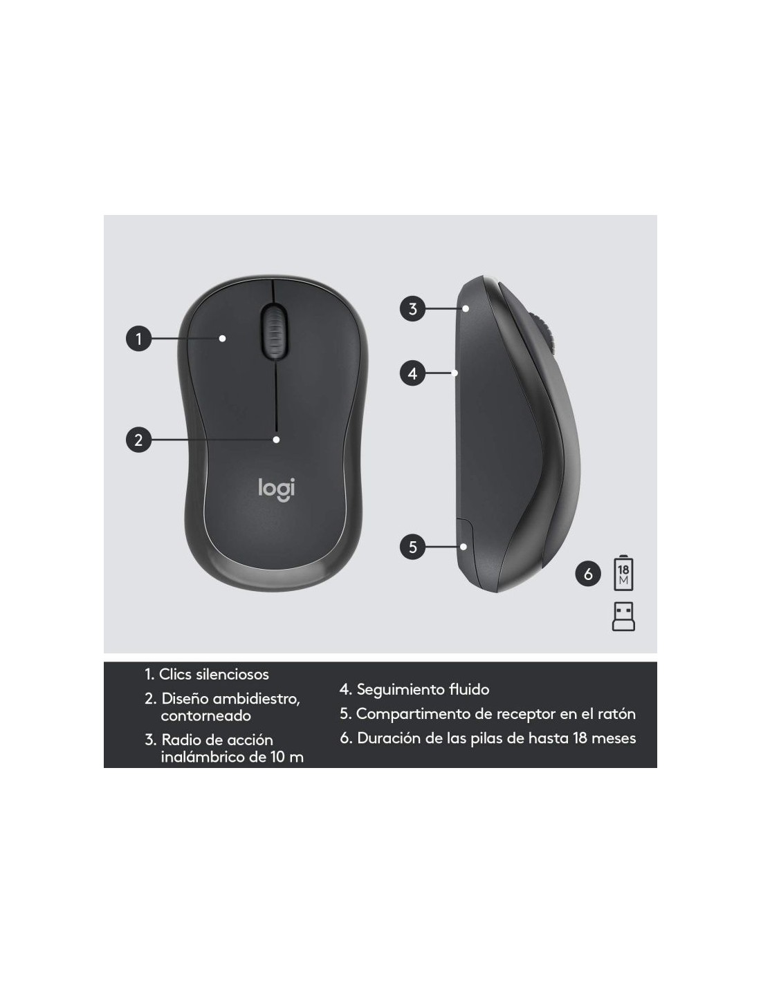 Teclado y Ratón Inalámbricos Logitech Silent Touch MK295/ Grafito. (DESPRECINTADO, PERFECTO ESTADO)