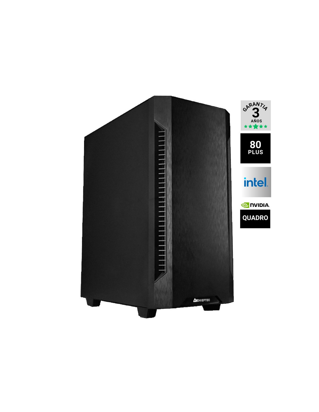 Procesador: Intel Core S-1851 ULTRA 5 225F 3.3Ghz, Chipset: INTEL B860, Memoria: DDR5 16B 5600MHZ, Disco duro: SSD M.2 1TB NVME, Vga: Nvidia QUADRO RTX A1000 AMPERE 8GB, Fuente 750W/50A 80% BRONZE NEGRA, x1 Ventilador, Freedos, Caja SEMITORRE ATX CHIEFTEC AS-01B-OP Negra. PRODUCTO SUJETO A CANON DE 5,33€ QUE SE APLICARA EN FACTURA.